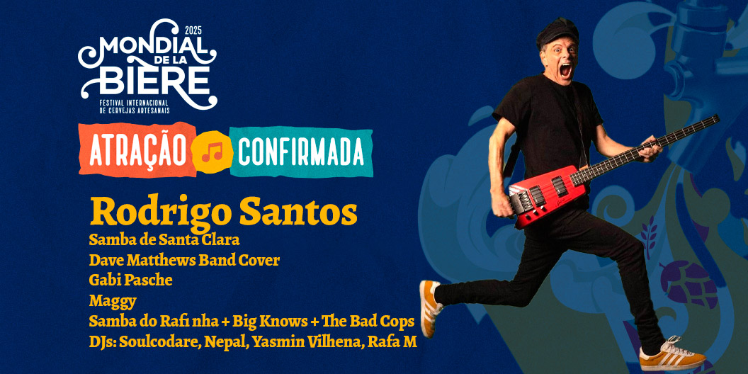 Mondial de la Bière 2025: Rodrigo Santos, Samba de Santa Clara e tributos no sábado